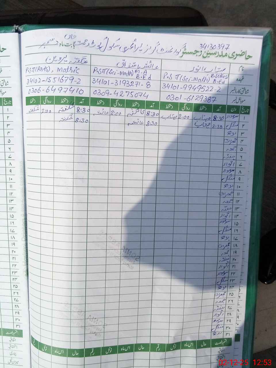 | CNIC | Full Name | Designation | R/C | Absence During Last Calender Month |