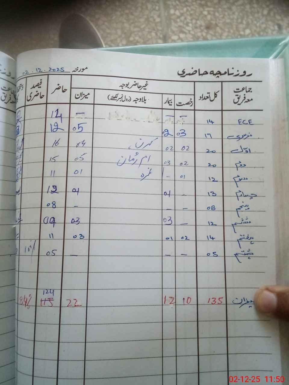| CNIC | Full Name | Designation | R/C | Absence During Last Calender Month |