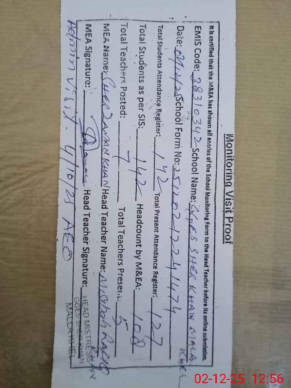 | EMIS Code: 38310342 | Name of School: GGES SHER KHAN MALLA KHEL | |||