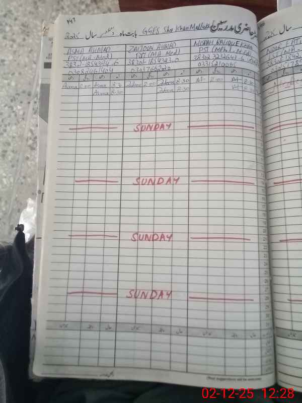 | Name: Hi**** Bi**** Designation: (School Headmaster's/Headmistress's) PST Phone/Cell Number: 03**** |