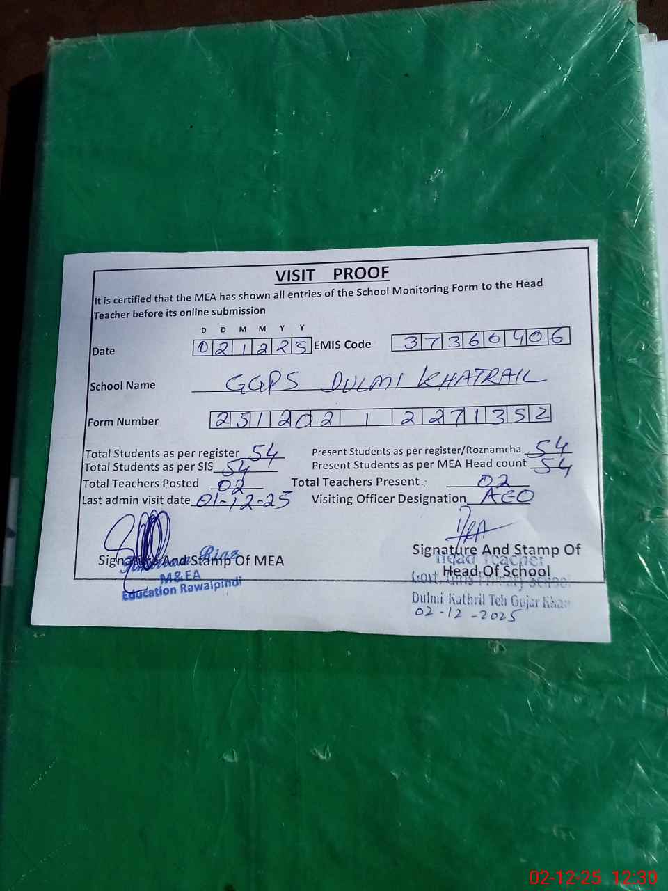 | EMIS Code: 37360406 | Name of School: GGPS DULMI KHTRAIL | |||
