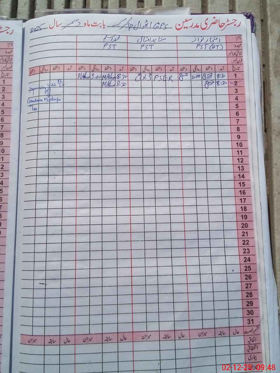 | Name: Mu**** Hu**** Designation: (School Headmaster's/Headmistress's) PST Phone/Cell Number: 03**** |