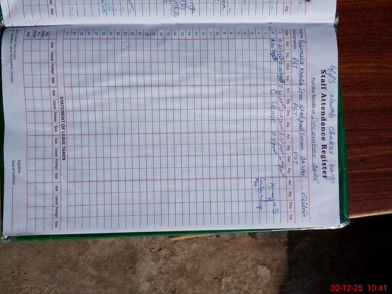 | Name: Pa**** KH**** Designation: (School Headmaster's/Headmistress's) PST Phone/Cell Number: 03**** |