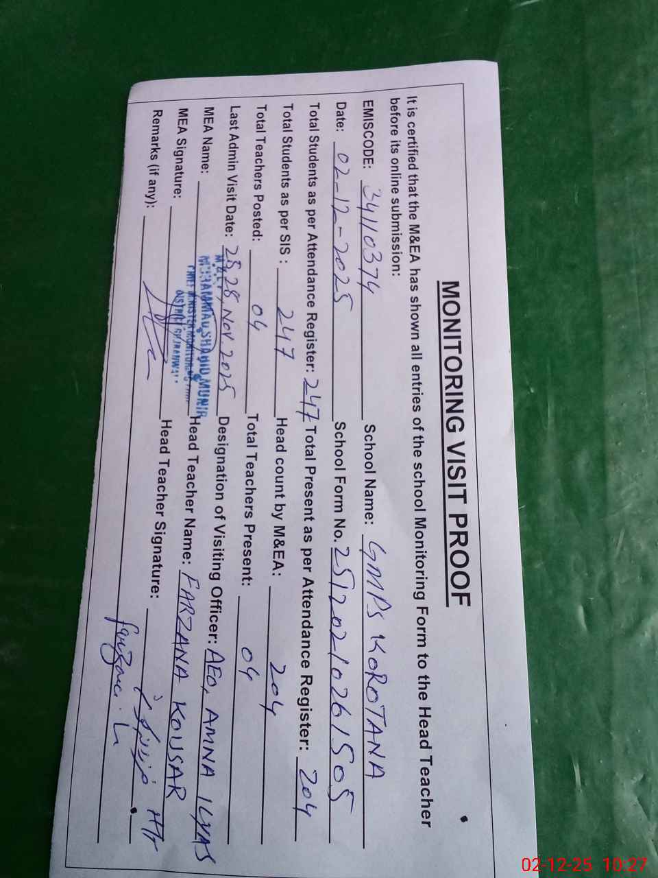 | EMIS Code: 34110374 | Name of School: GMPS KOROTANA | |||