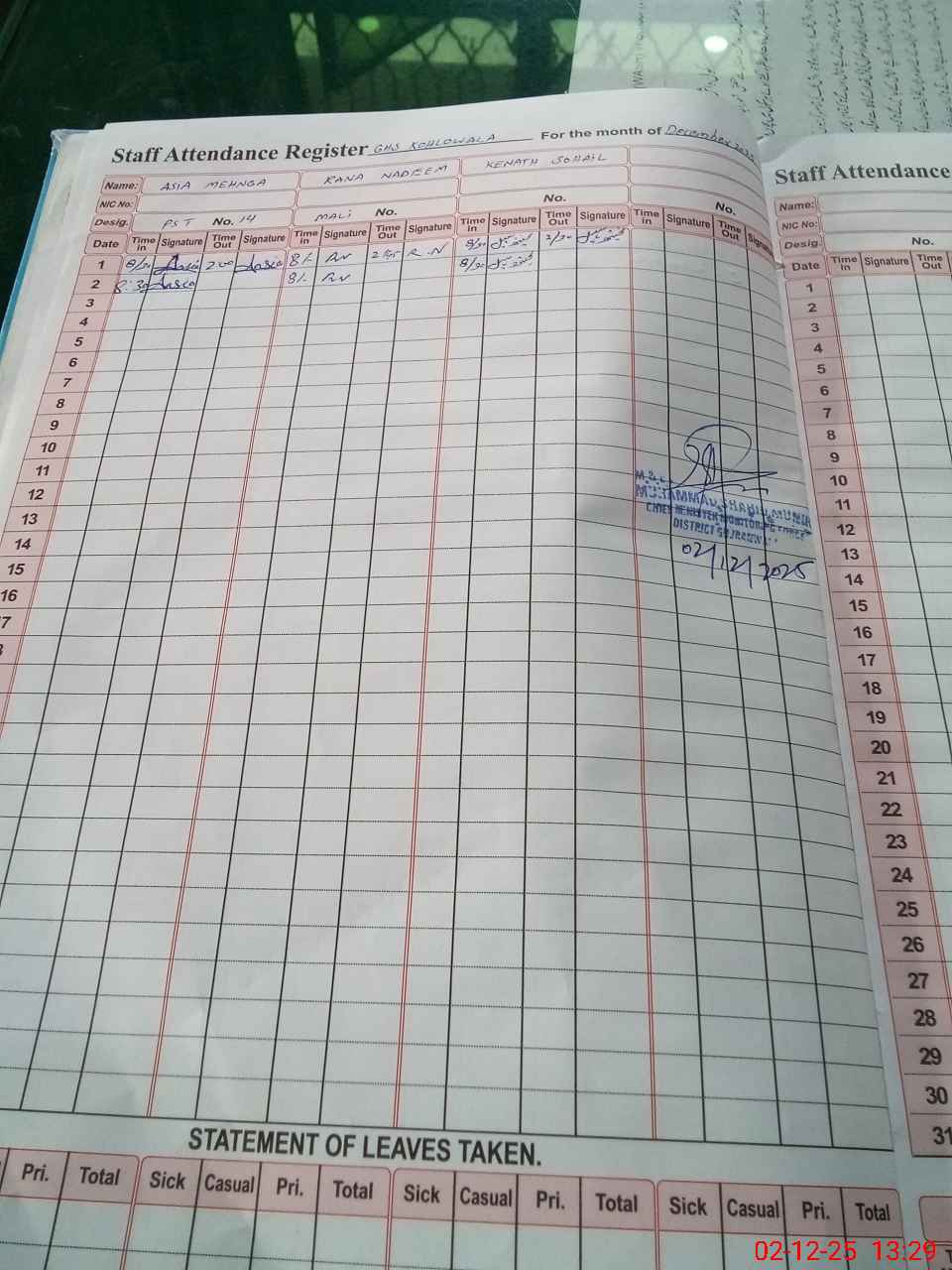 | Remarks (Use Separate Page if Required): Babar ali pst and umar shafique both are not leave approved . | |||||