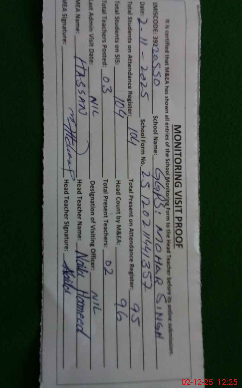 | EMIS Code: 39220550 | Name of School: GGPS MOHAR SINGH | |||