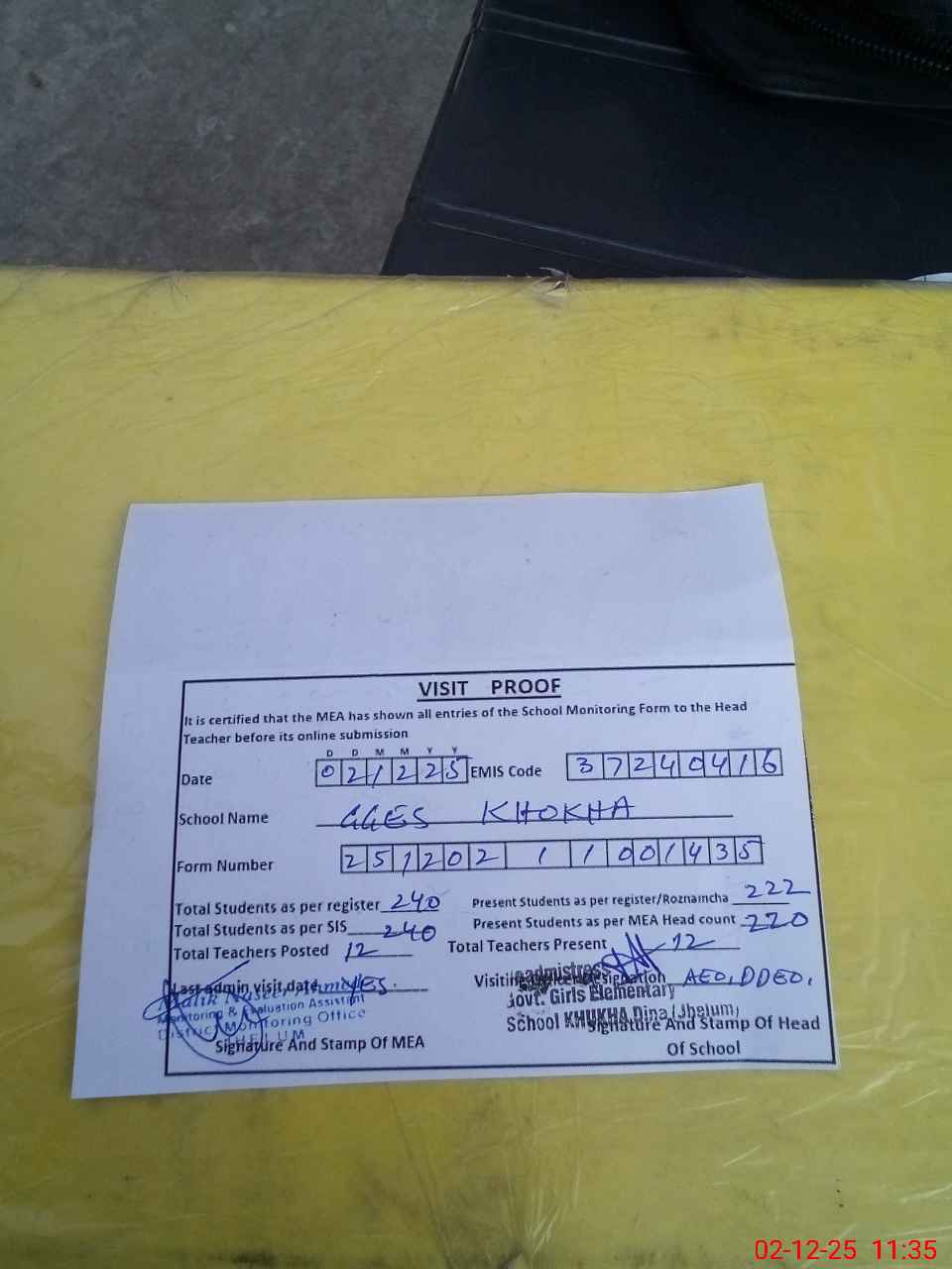 | Certified that this School was Inspected by the Undersigned MEA/DMO Today and the Information Stated Above is as Per Record. | |||||