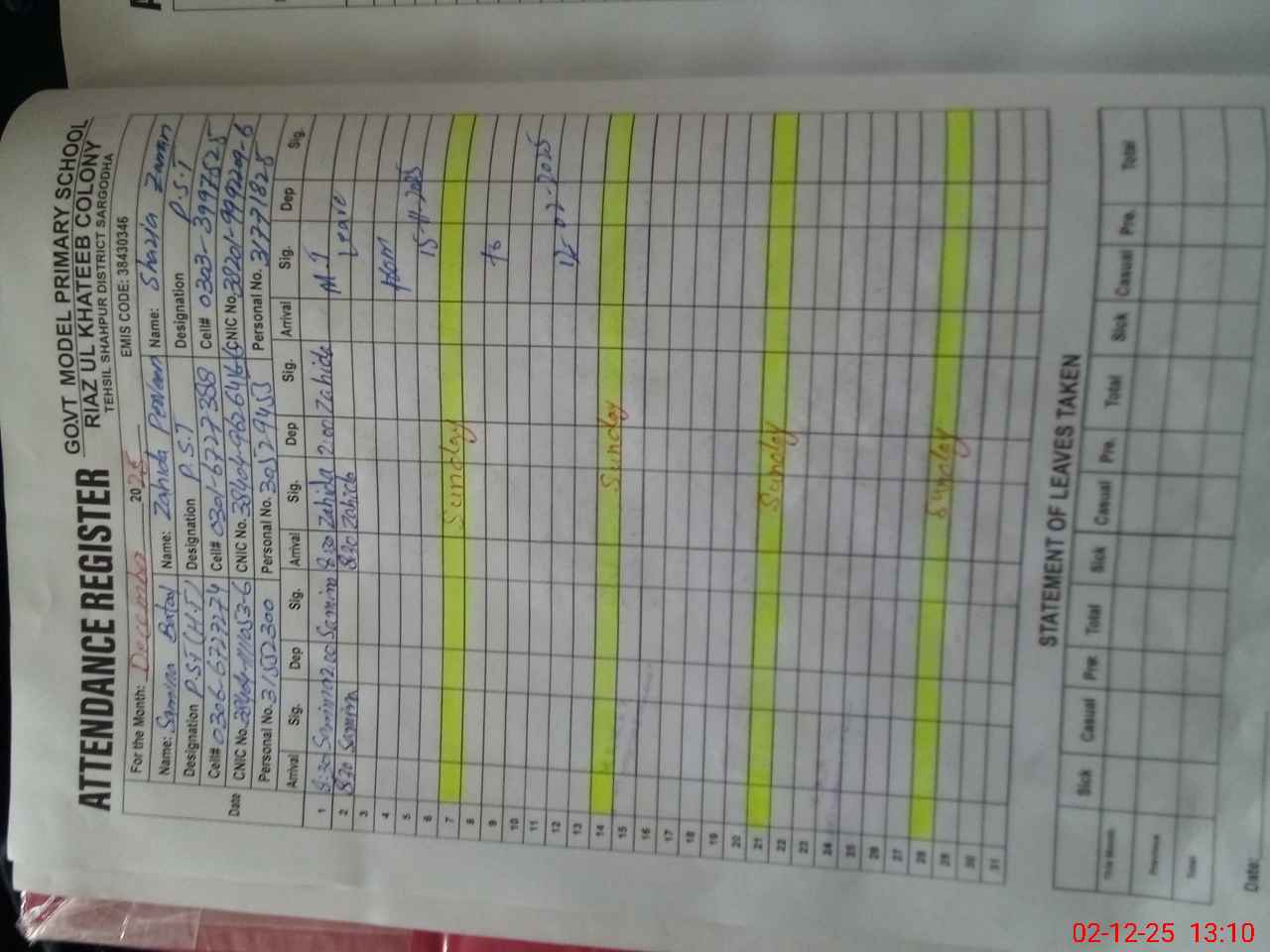 | EMIS Code: 38430346 | Name of School: GMPS RIAZ UL KHATEEB COLONY SHAHPUR SADAR | |||