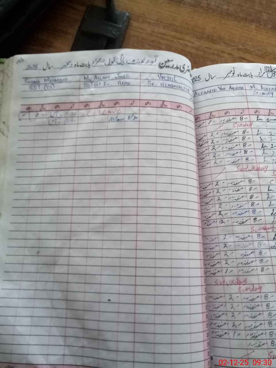 | CNIC | Full Name | Designation | R/C | Absence During Last Calender Month |