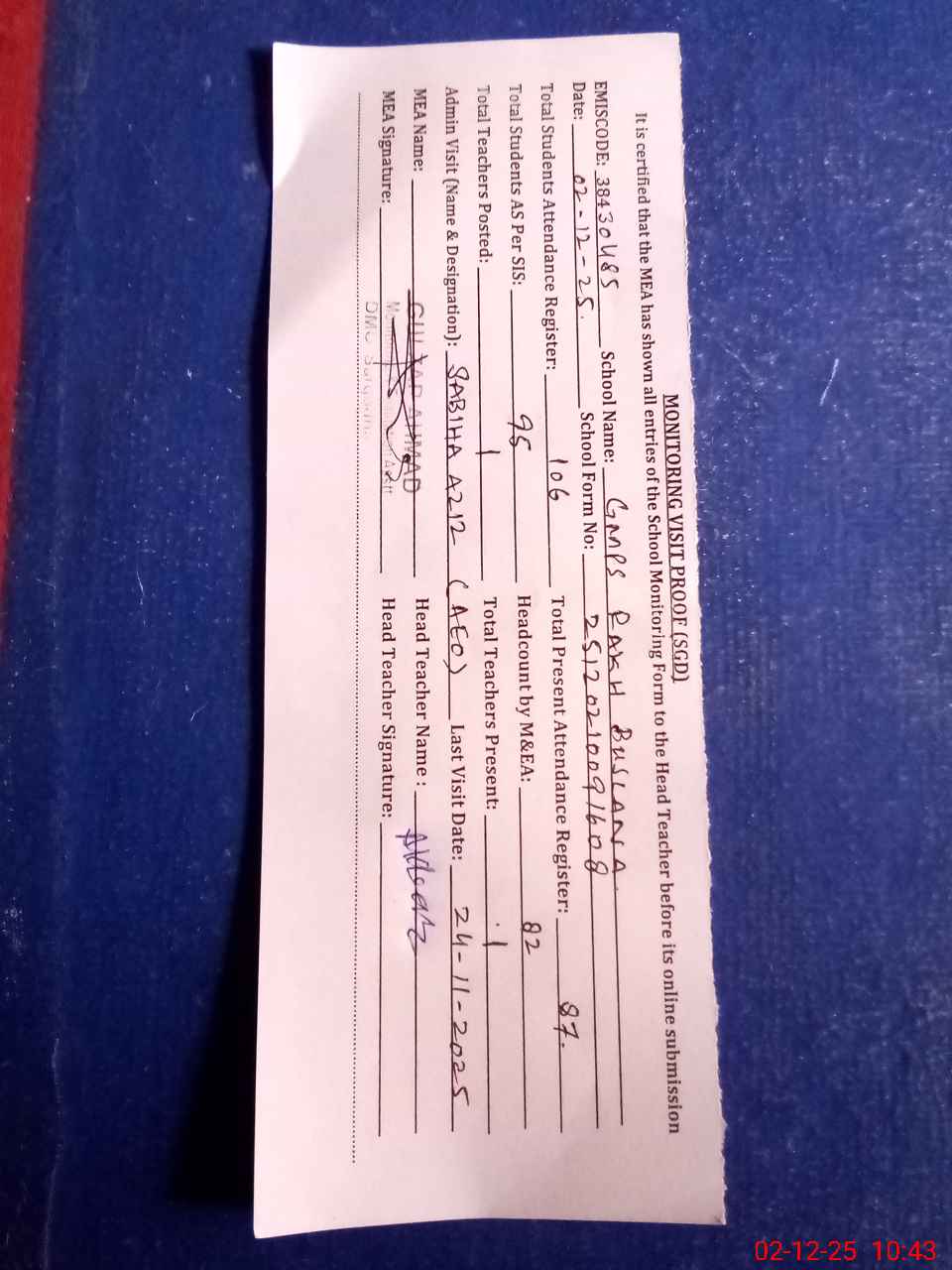 | EMIS Code: 38430485 | Name of School: GMPS RAKH BUSLANA | |||