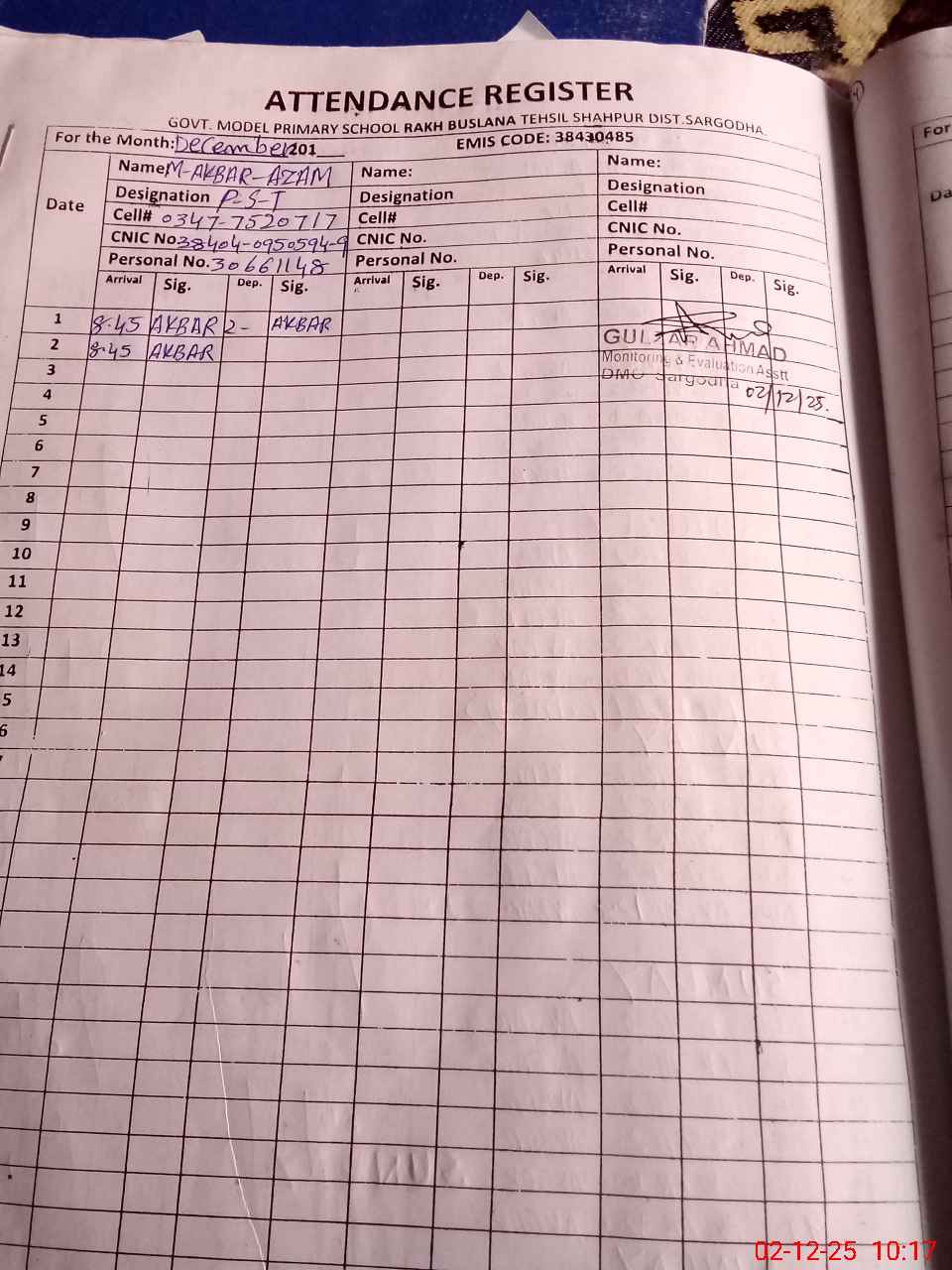 | Name: MA**** HU**** Designation: (School Headmaster's/Headmistress's) PST Phone/Cell Number: 03**** |