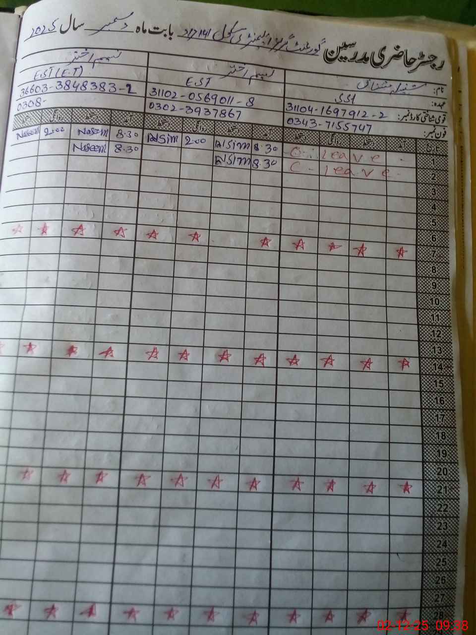 | Name: Sh**** Mu**** Designation: (School Headmaster's/Headmistress's) SSt Phone/Cell Number: 03**** |