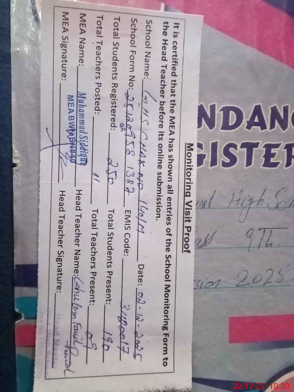 | EMIS Code: 31120017 | Name of School: GHS CHAK NO. 140 MURAD | |||
