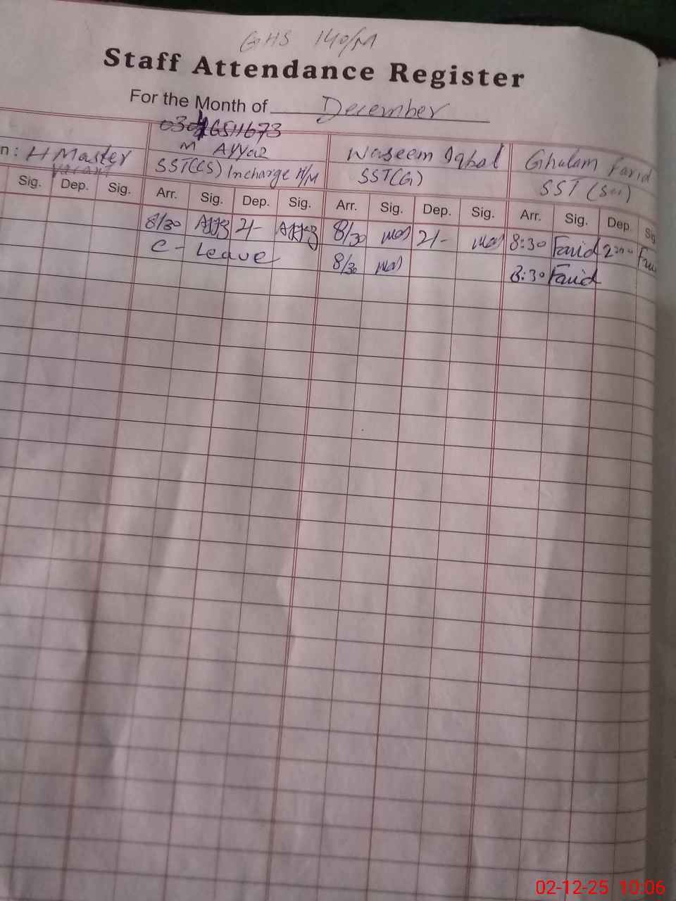 | Name: Mu**** Ay**** Designation: (School Headmaster's/Headmistress's) SST CS Phone/Cell Number: 03**** |