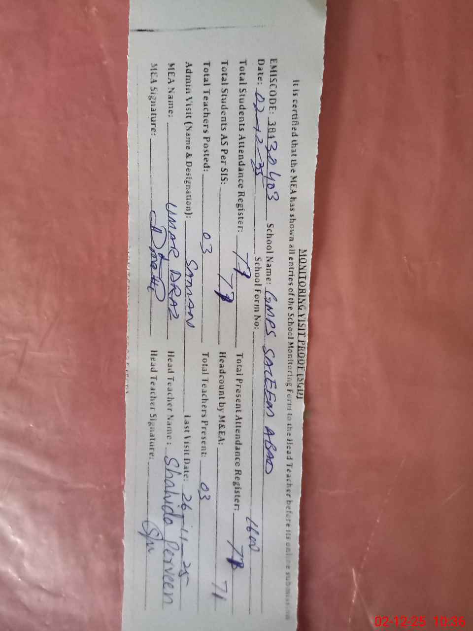 | EMIS Code: 38430403 | Name of School: GMPS SALEEM ABAD | |||
