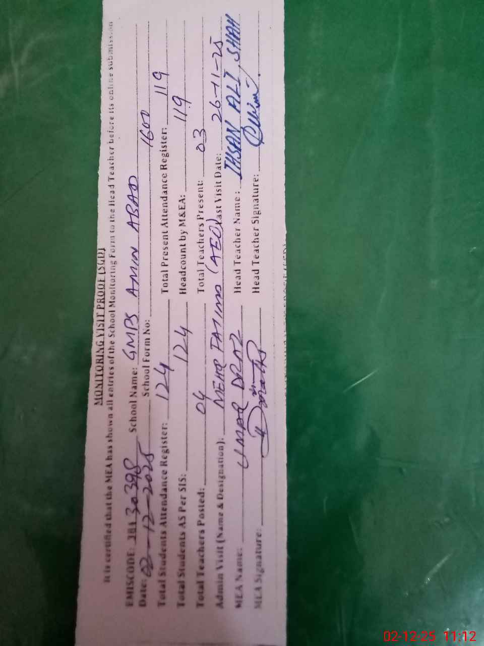 | EMIS Code: 38430398 | Name of School: GMPS AMIN ABAD | |||