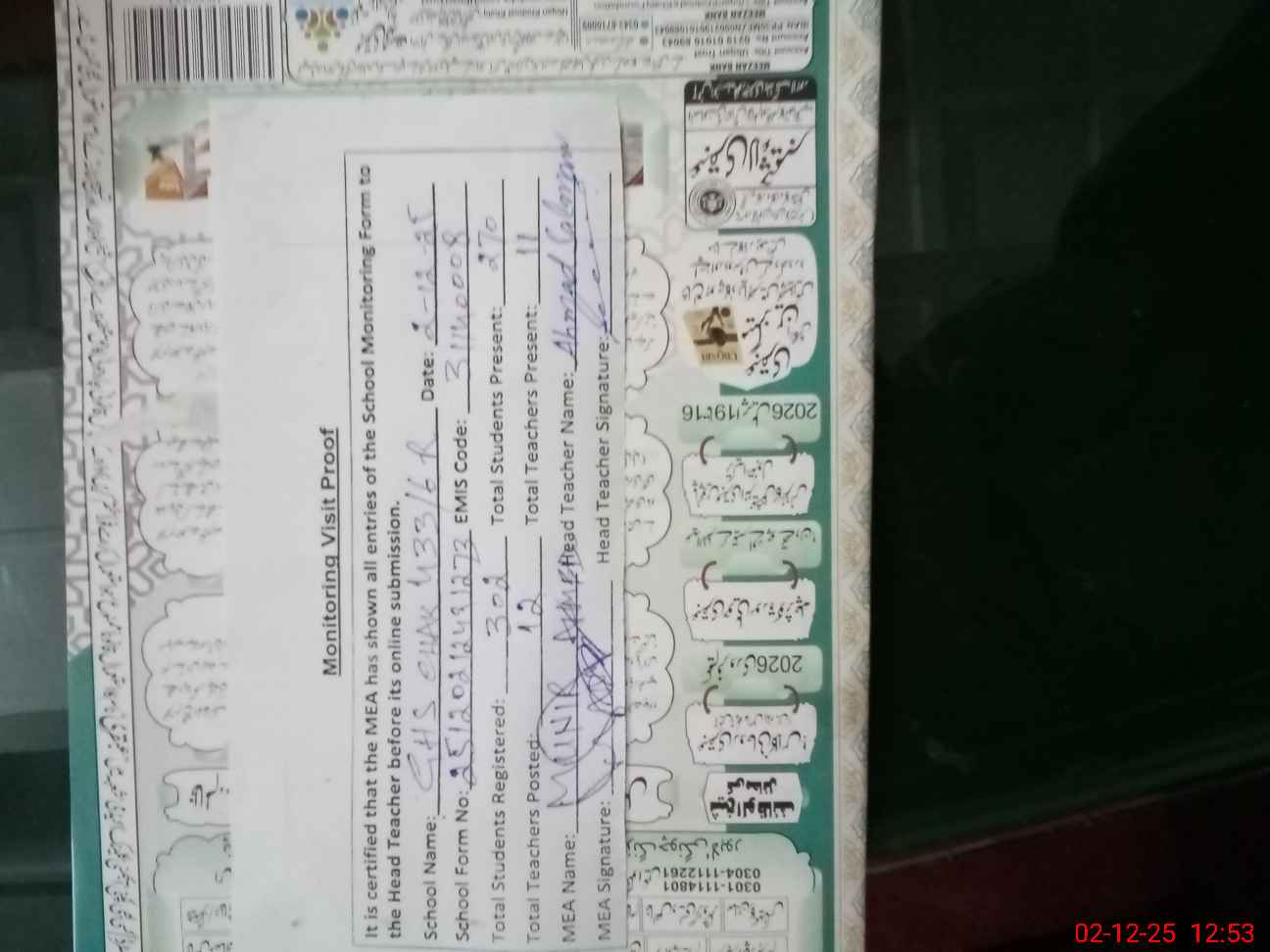 | Name: Ah**** Su**** Designation: (School Headmaster's/Headmistress's) S.S.T. G Phone/Cell Number: 03**** |