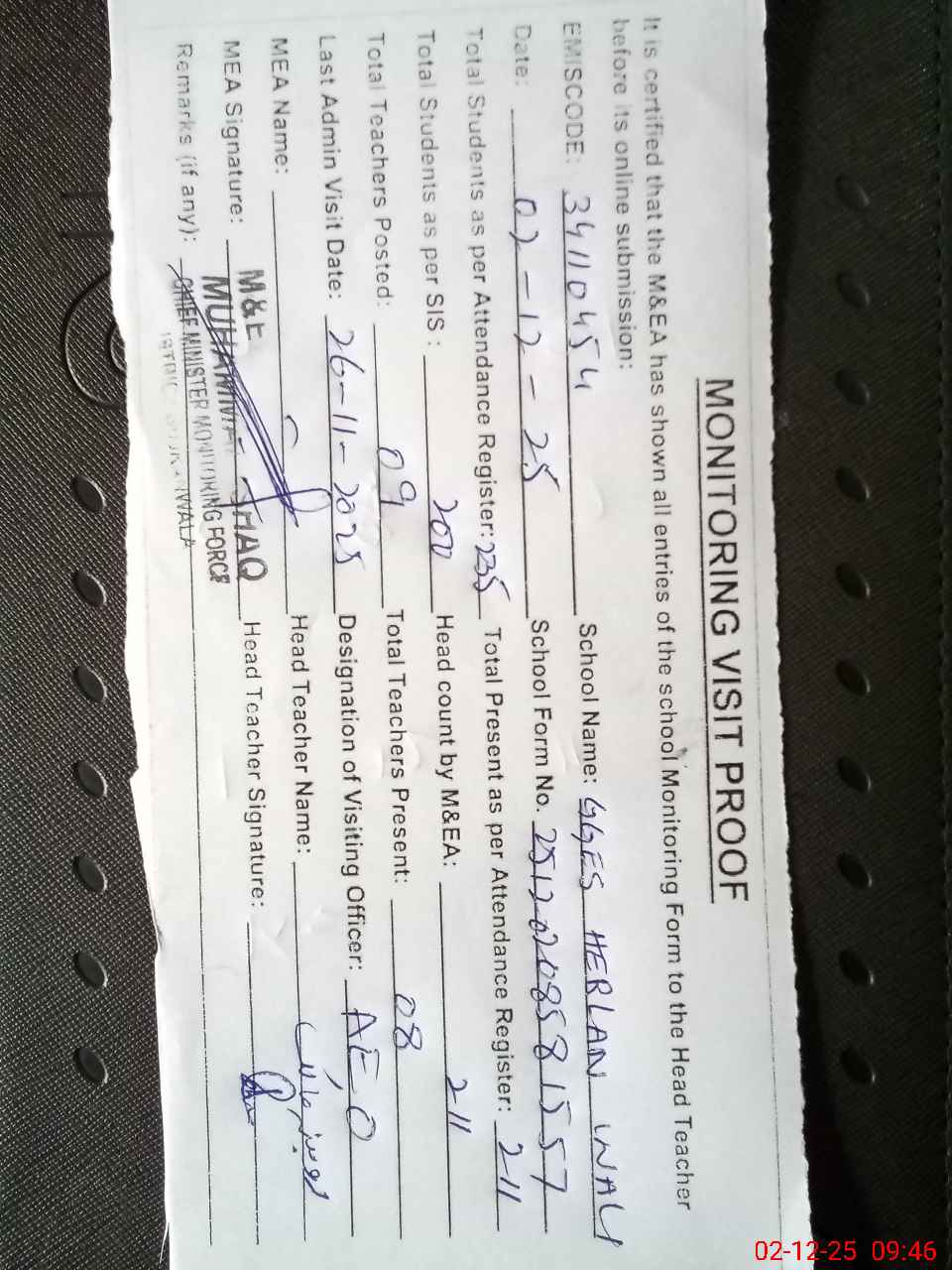 | EMIS Code: 34110454 | Name of School: GGES HERLAN WALI | |||