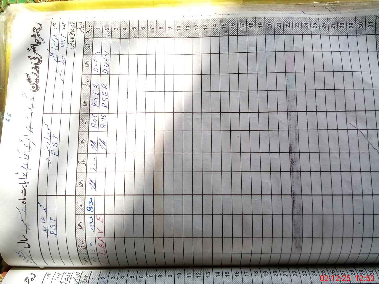 | CNIC | Full Name | Designation | R/C | Absence During Last Calender Month |
