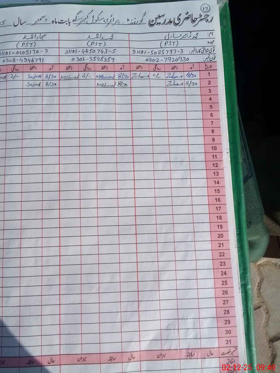 | Name: MO**** ZU**** AD**** Designation: (School Headmaster's/Headmistress's) PST Phone/Cell Number: 03**** |