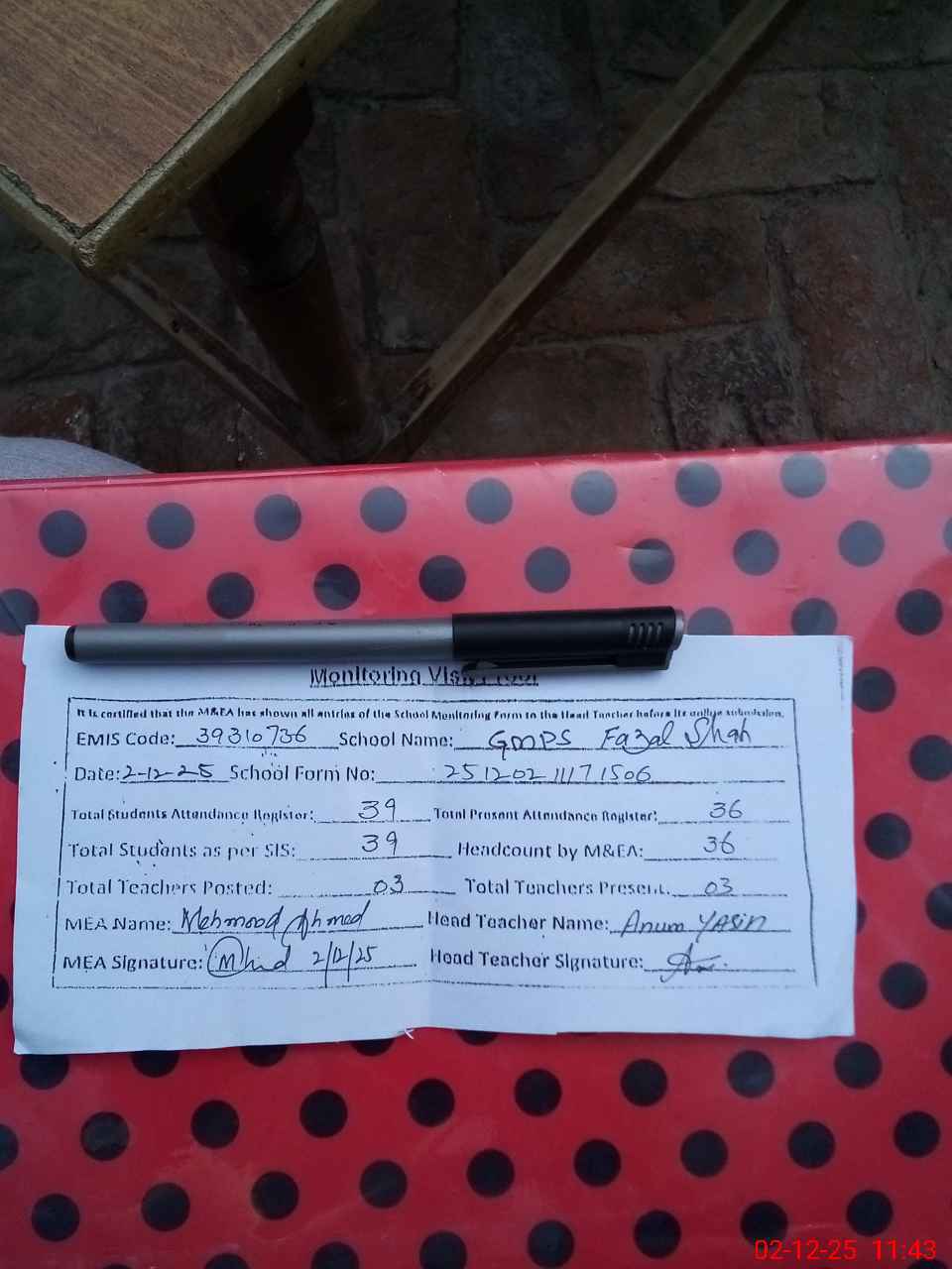 | EMIS Code: 39310736 | Name of School: GMPS CHAK FAZAL SHAH | |||