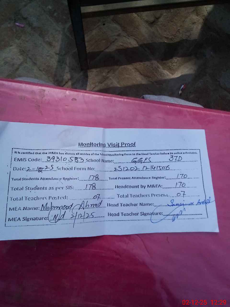 | EMIS Code: 39310553 | Name of School: GGES CHAK NO. 37/D | |||