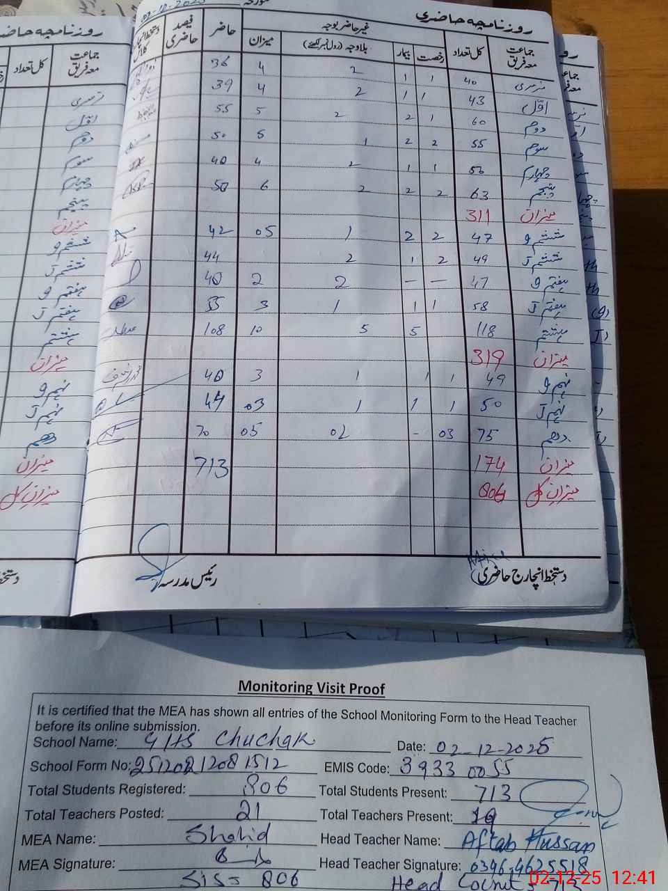 | EMIS Code: 39330055 | Name of School: GHS CHUCHAK | |||