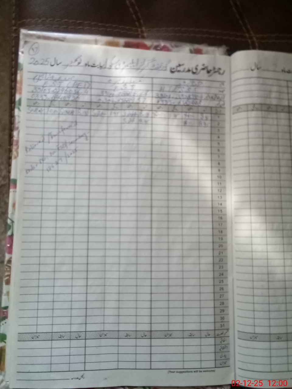 | CNIC | Full Name | Designation | R/C | Absence During Last Calender Month |