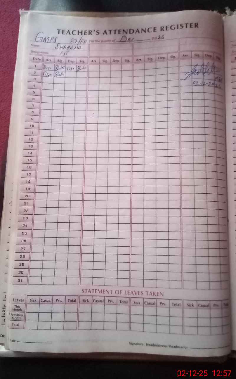 | Name: Sh**** Designation: (School Headmaster's/Headmistress's) PST Phone/Cell Number: 03**** |