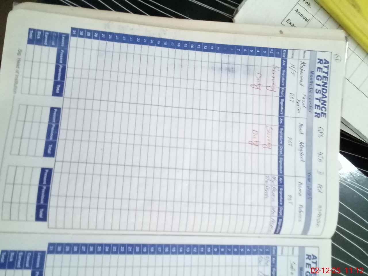 | CNIC | Full Name | Designation | R/C | Absence During Last Calender Month |