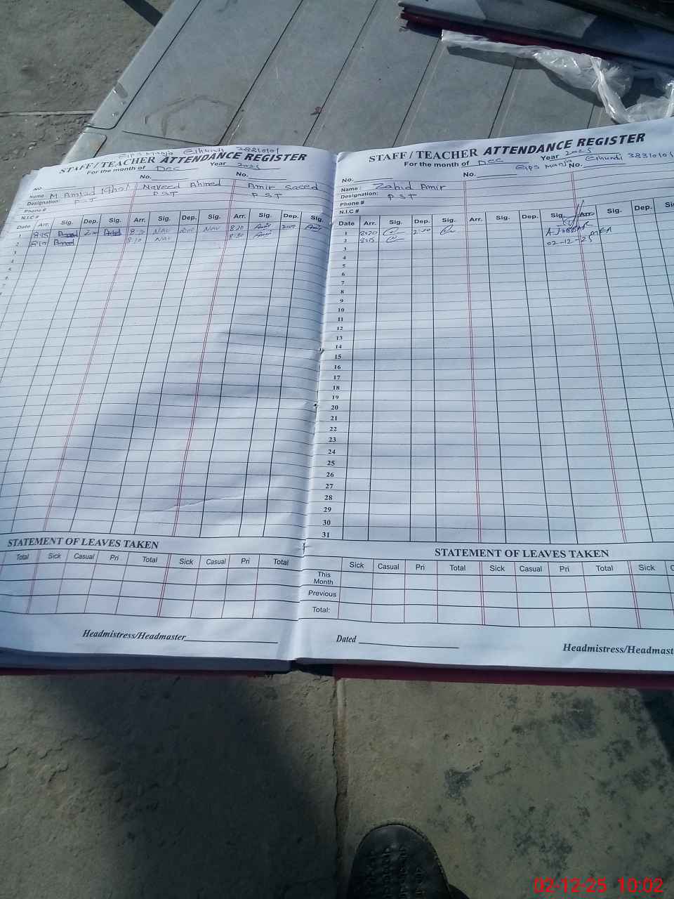 | CNIC | Full Name | Designation | R/C | Absence During Last Calender Month |