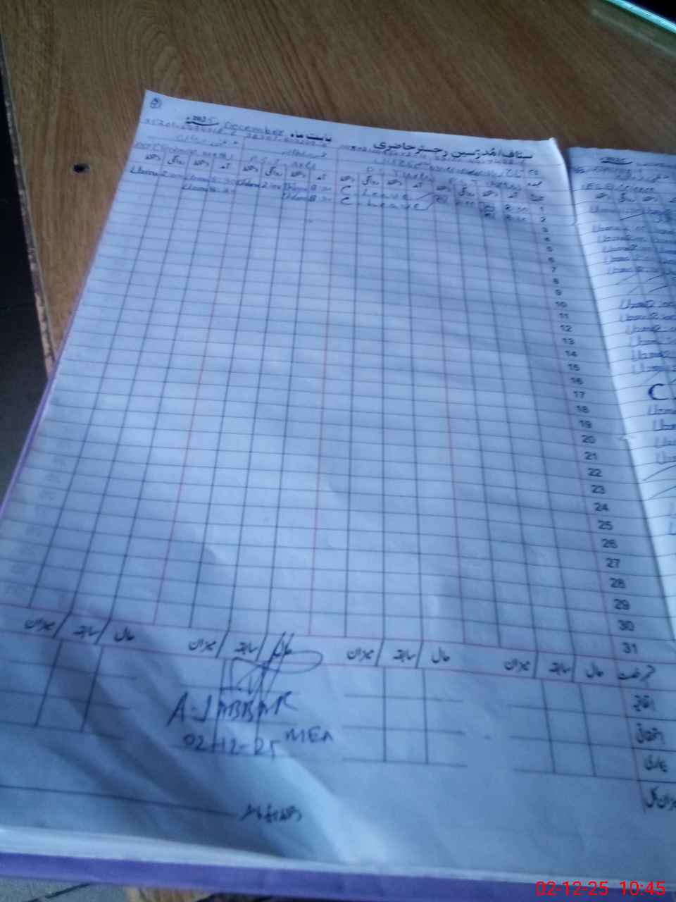 | CNIC | Full Name | Designation | R/C | Absence During Last Calender Month |