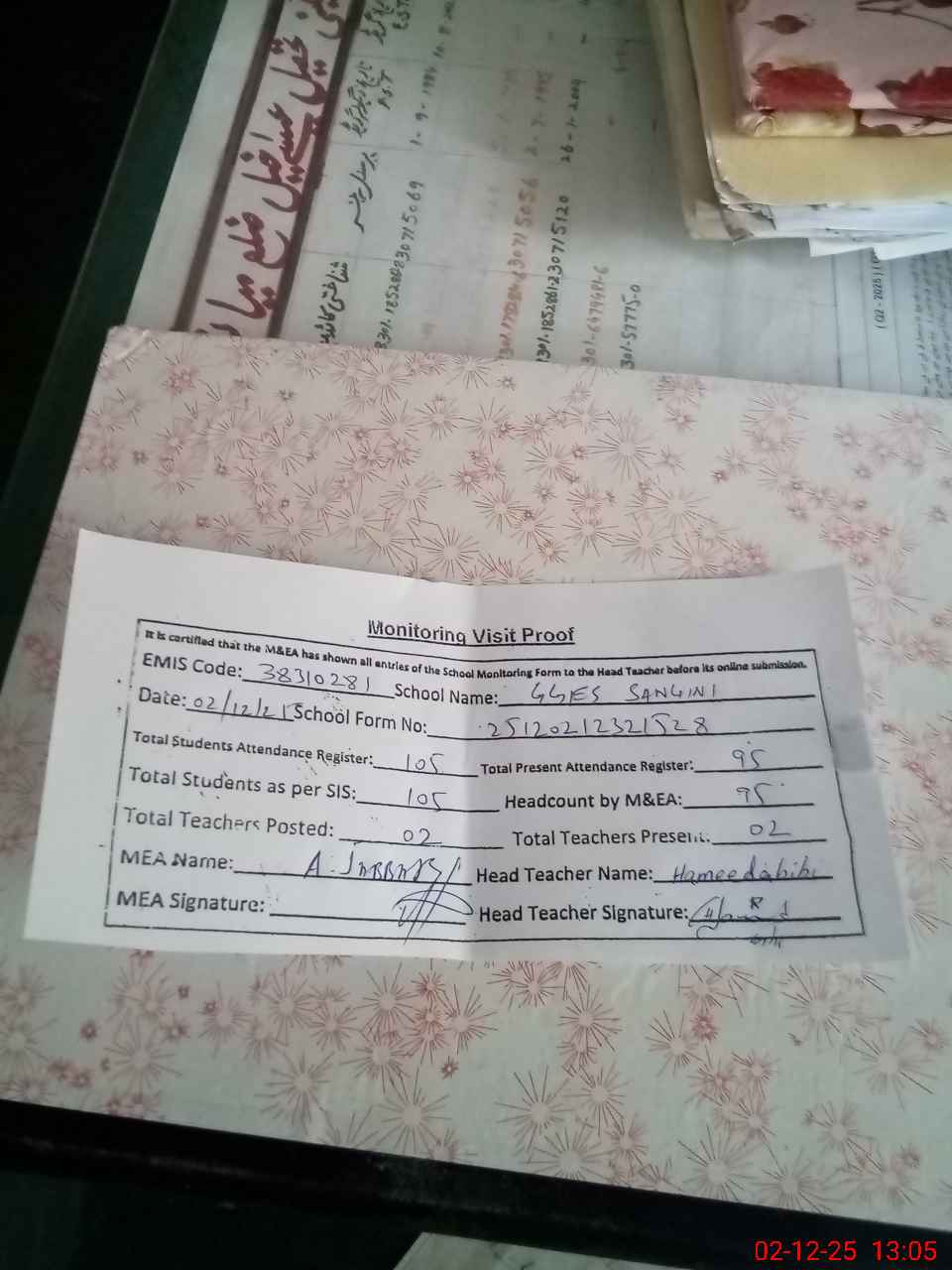 | Certified that this School was Inspected by the Undersigned MEA/DMO Today and the Information Stated Above is as Per Record. | |||||