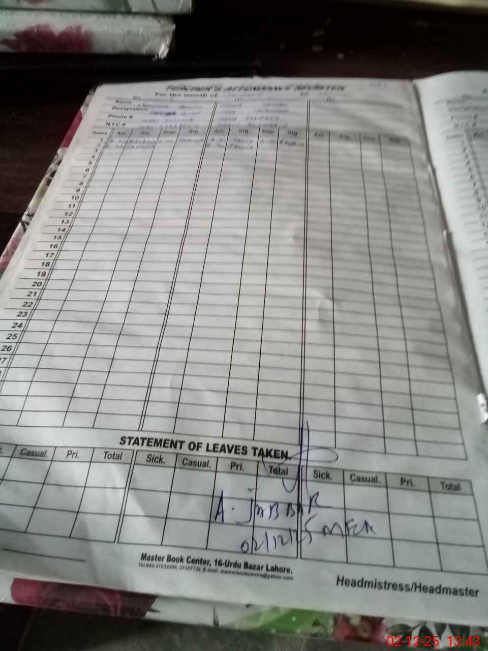 | Name: Uz**** No**** Designation: (School Headmaster's/Headmistress's) PST Phone/Cell Number: 03**** |