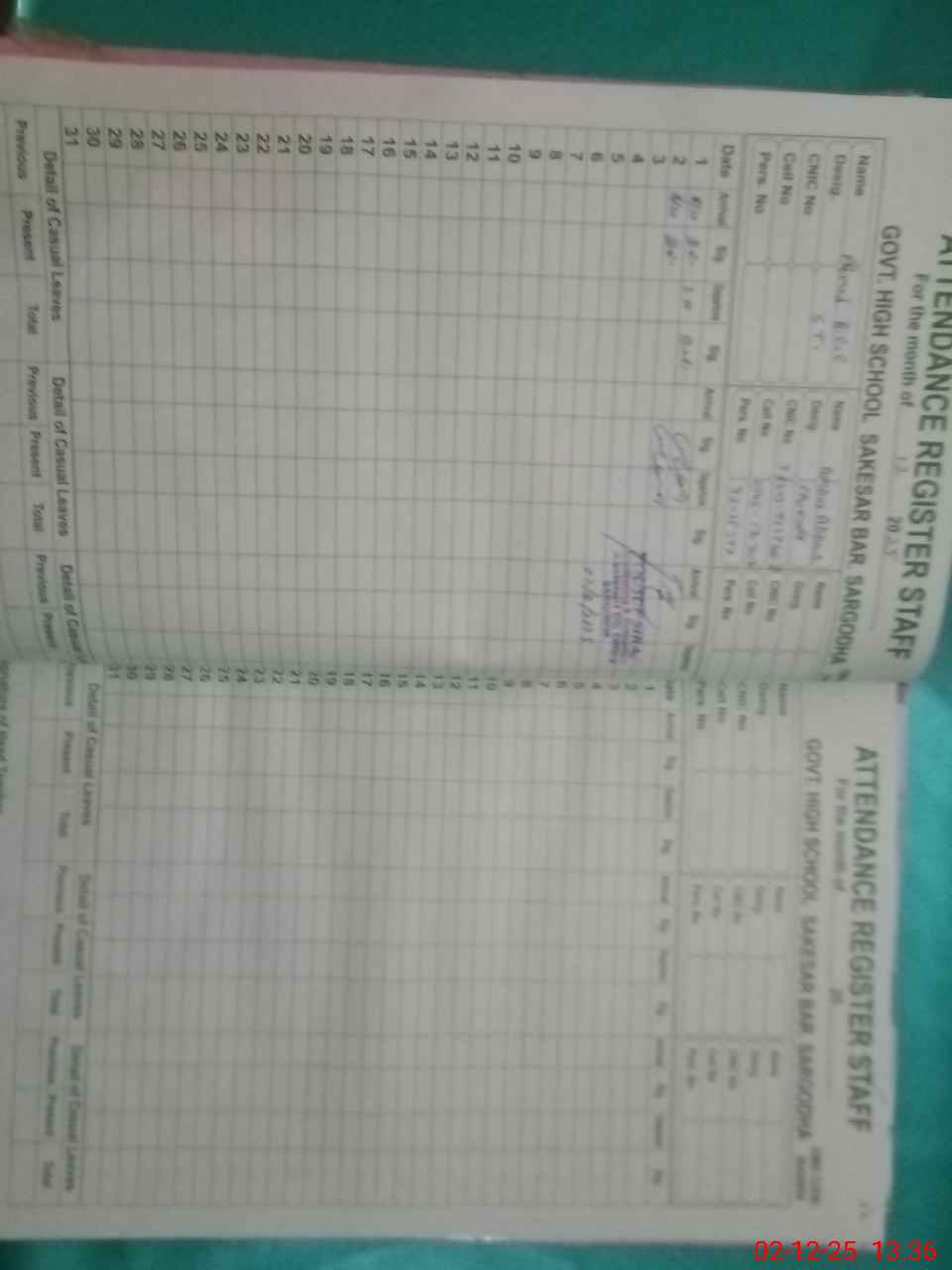 | CNIC | Full Name | Designation | R/C | Absence During Last Calender Month |
