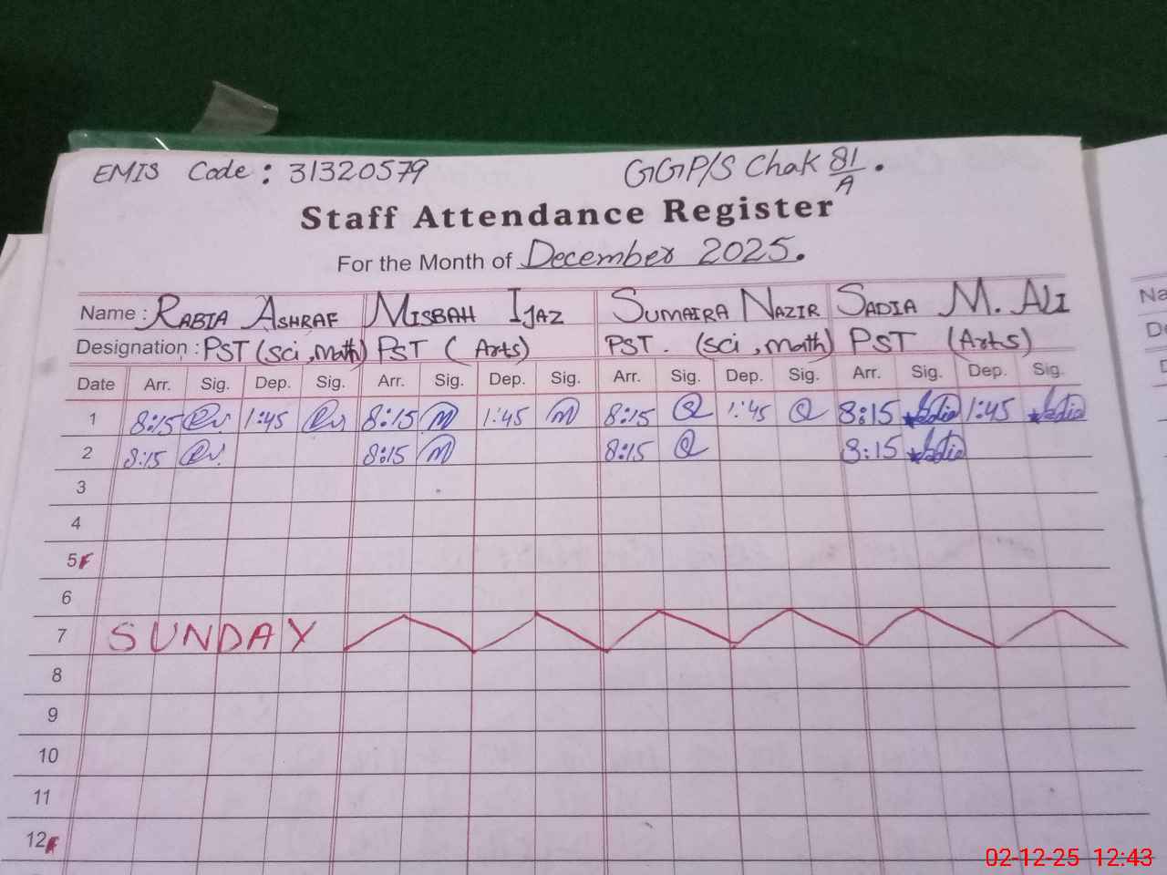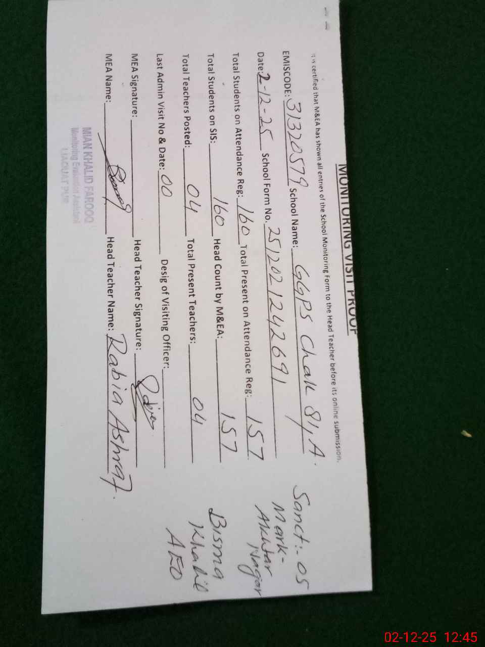 | EMIS Code: 31320579 | Name of School: GGPS CHAK NO 81 A | |||