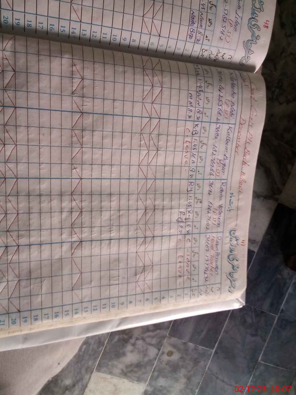 | CNIC | Full Name | Designation | R/C | Absence during last cal. month |