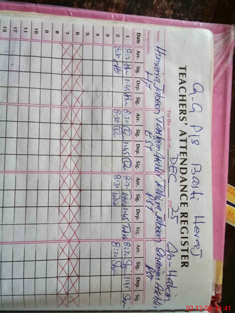 | Name: Hu**** Ja**** Designation: (School Headmaster's/Headmistress's) EST ART Phone/Cell Number: 03**** |