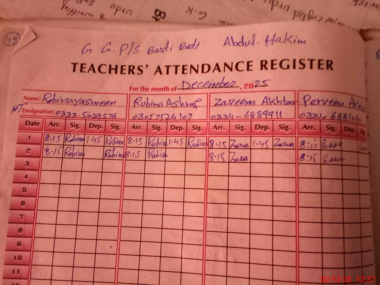 | Name: Ro**** Ya**** Designation: (School Headmaster's/Headmistress's) PST Phone/Cell Number: 03**** |