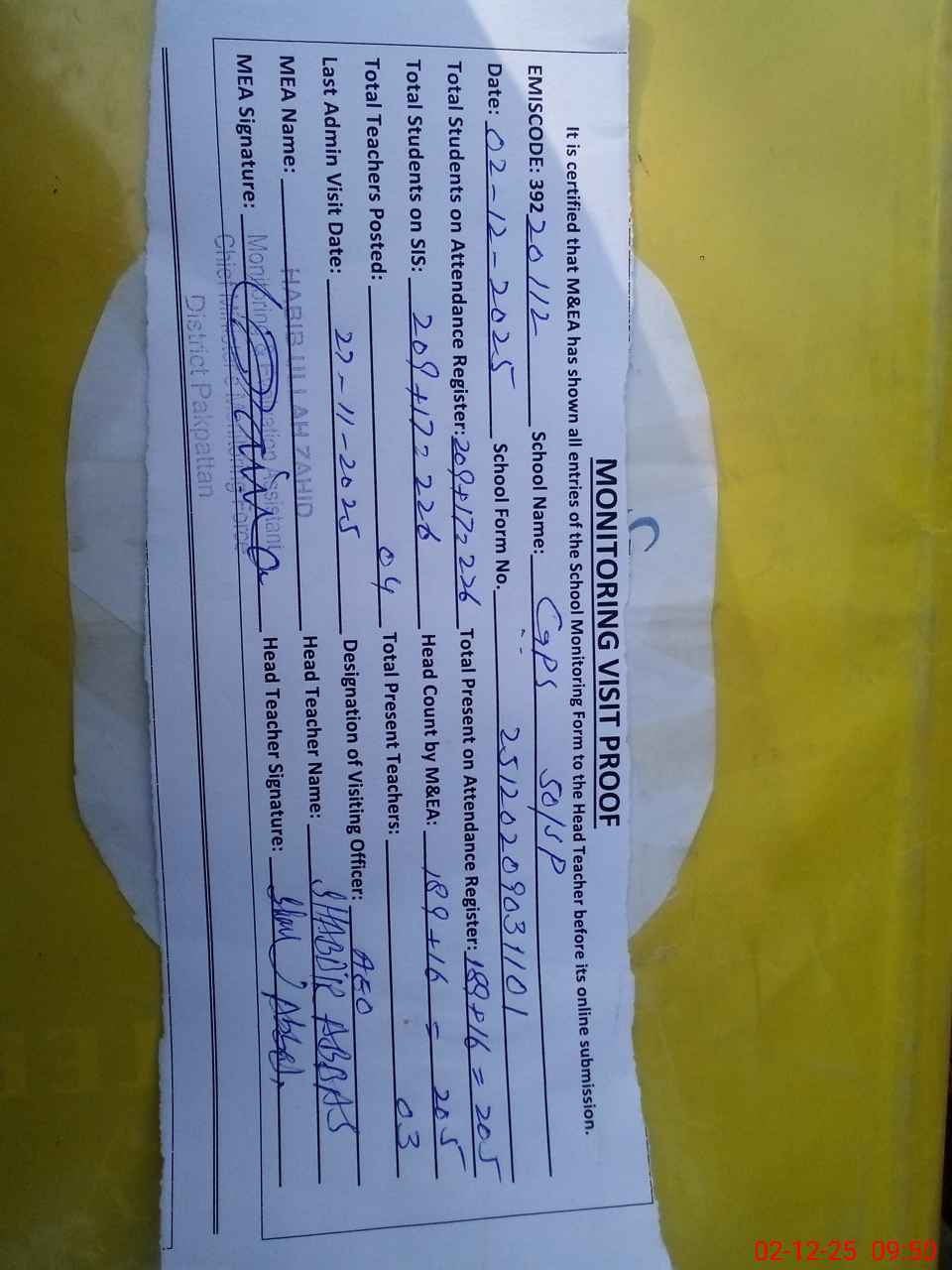 | EMIS Code: 39220112 | Name of School: GPS 50 SP | |||