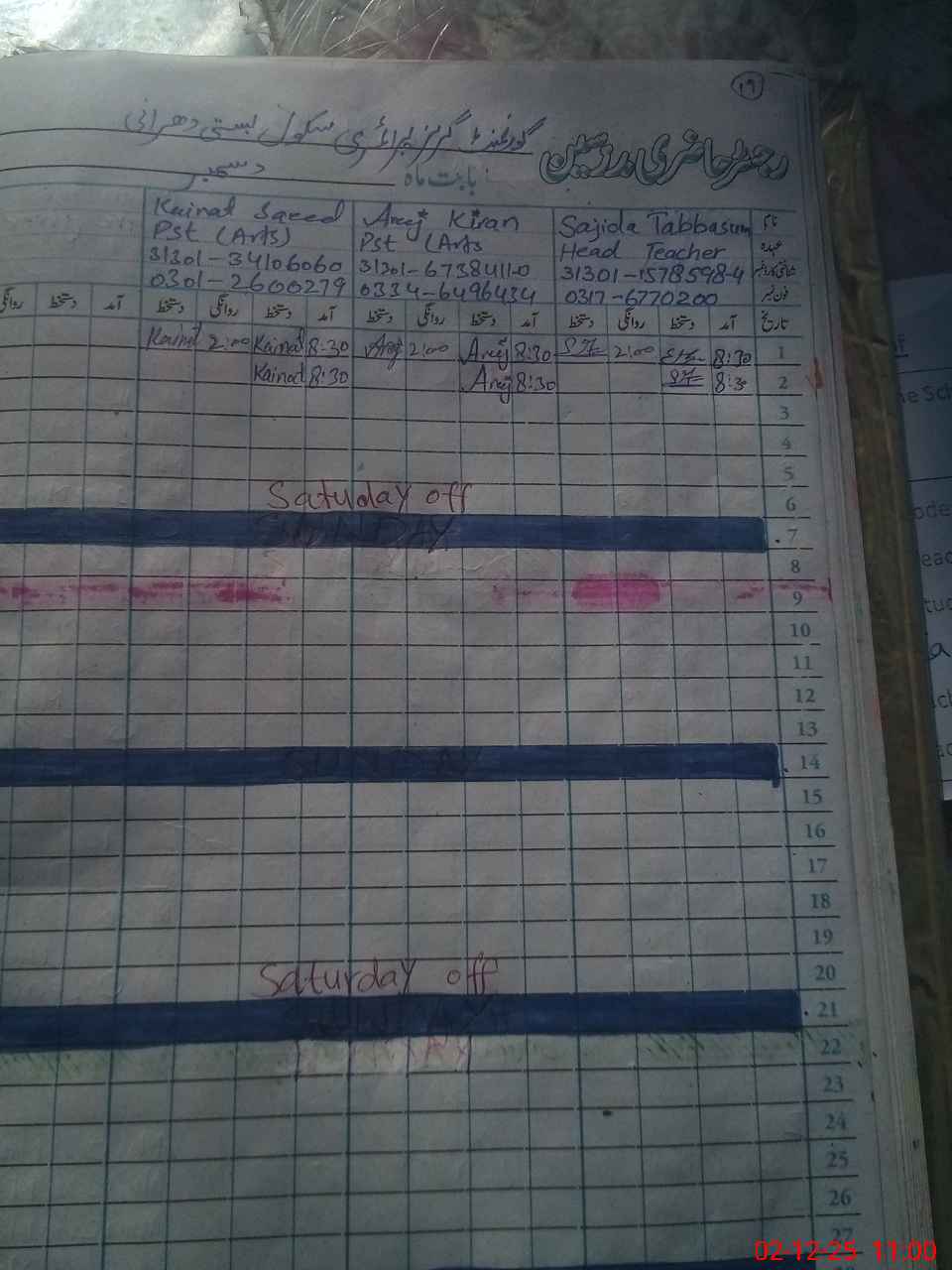 | Name: Sa**** Ta**** Designation: (School Headmaster's/Headmistress's) PST Phone/Cell Number: 03**** |
