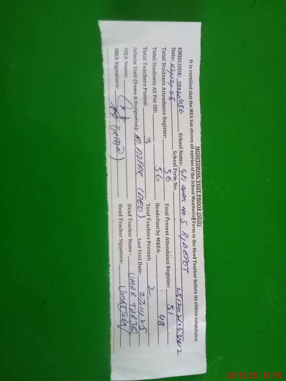 | EMIS Code: 38420486 | Name of School: GPS CHAK NO.5 REMOUNT DEPOT | |||