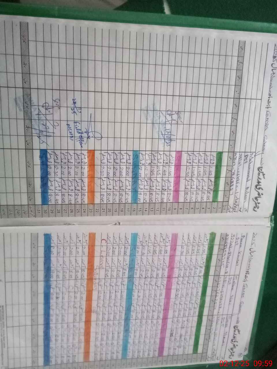 | CNIC | Full Name | Designation | R/C | Absence during last cal. month |