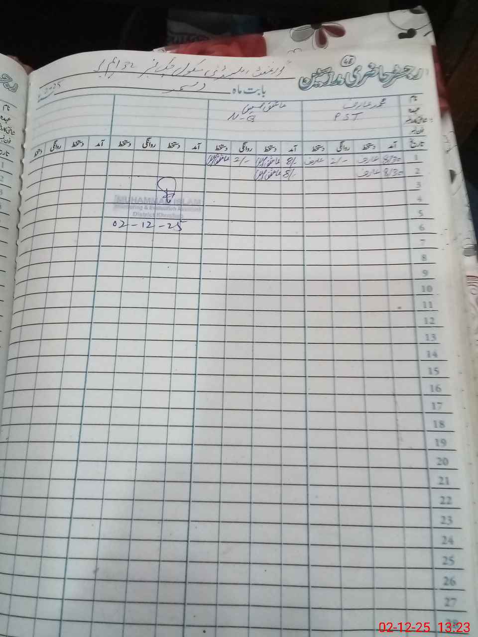 | CNIC | Full Name | Designation | R/C | Absence During Last Calender Month |
