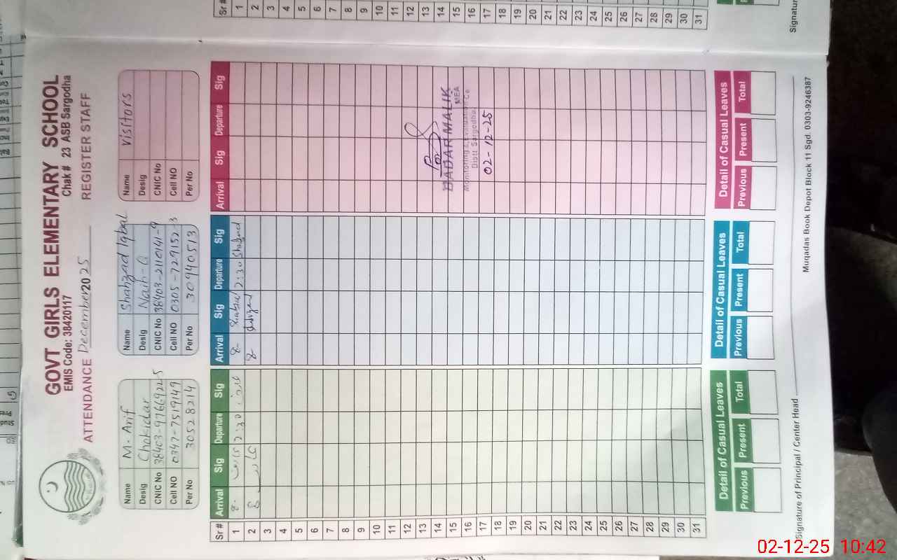| EMIS Code: 38420177 | Name of School: GGES CHAK NO.23 ASB | |||