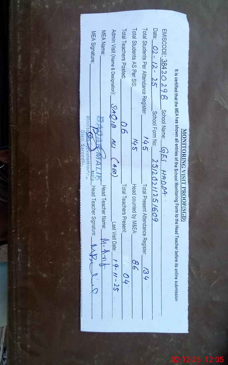 | EMIS Code: 38420298 | Name of School: GES HADDA | |||