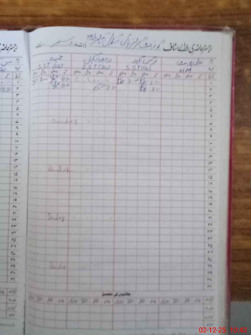 | CNIC | Full Name | Designation | R/C | Absence During Last Calender Month |