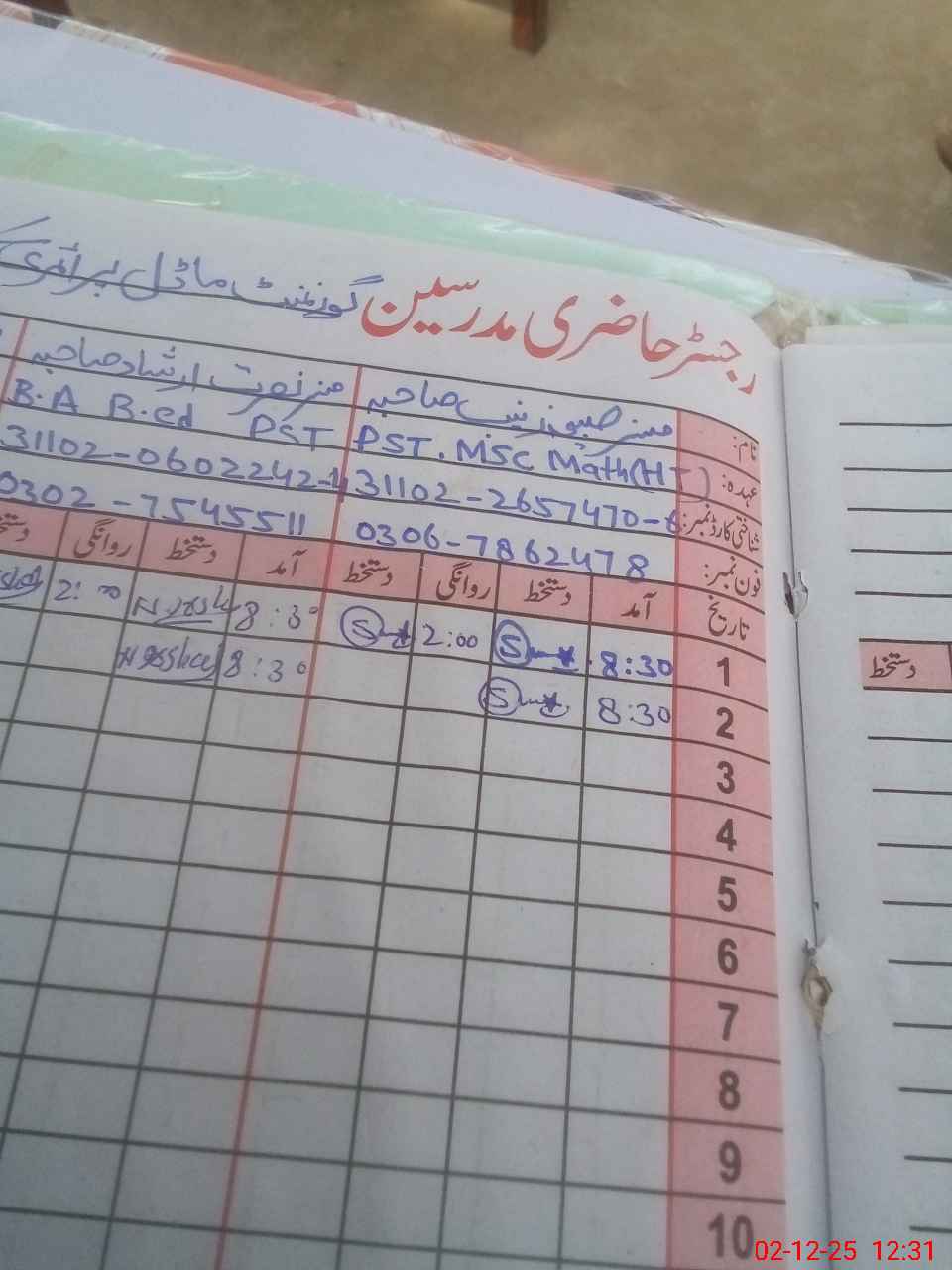 | Name: SA**** ZA**** Designation: (School Headmaster's/Headmistress's) ESE SCI MATH Phone/Cell Number: 03**** |