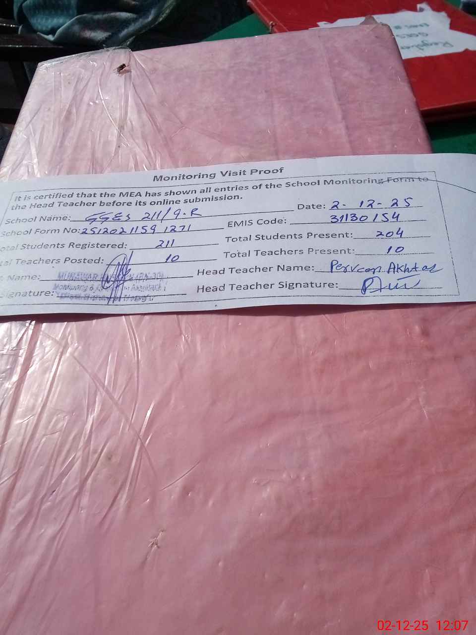 | EMIS Code: 31130061 | Name of School: GGES CHAK 211/9-R | |||