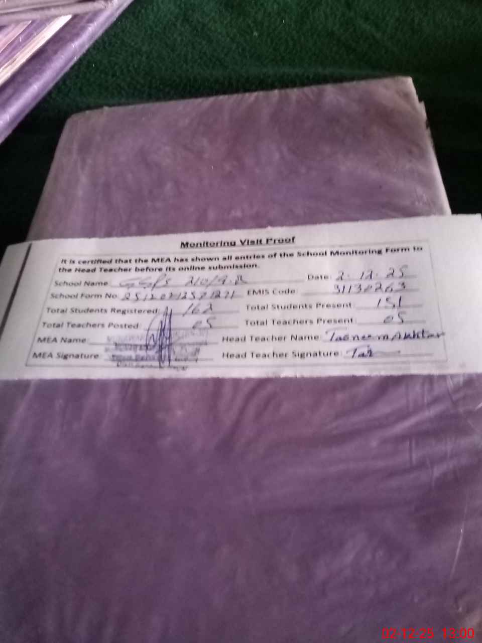 | Certified that this School was Inspected by the Undersigned MEA/DMO Today and the Information Stated Above is as Per Record. | |||||